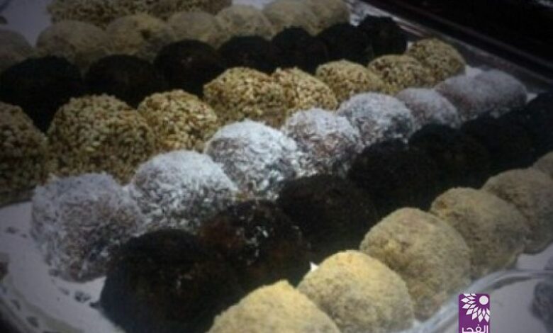 – يحشى التمر بمقدار ربع ملعقة صغيرة من خليط البسكويت ثم يغلق الفتحة بالضغط عليها ثم تزين بالسمسم ثم تقدم.