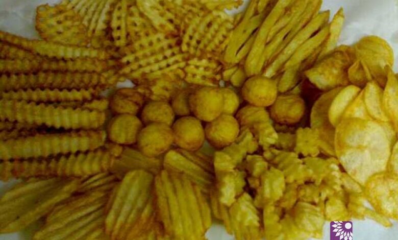 ثم يوضع البطاطس.(يمكن وضع البطاطس والخلطه في كيس بلاستيك وخلطه)