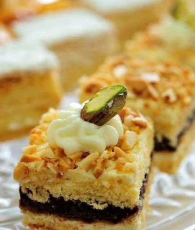 – يُقطع الكيك إلى أقسام عرضية( تُحدد الأحجام حسب الرغبة)، ثم يُقسم إلى مربعات.