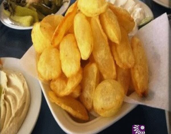 3- بعد ذلك تنشف جيداً شرائح البطاطس من الماء وتقلى بالزيت الحامي، ستلاحظين أنها تنتفخ على الفور.