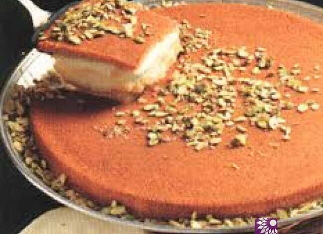 وبعد ماتستوي نخرجها من الفرن ونقلبها ونصب عليها الشيرة ونزينها بالفستق وا اي مكسرات اخرى