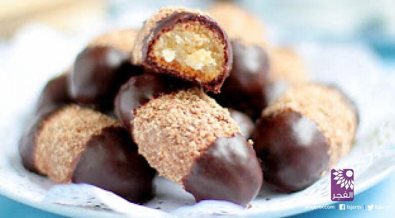 عندما نخرجها من الفرن، نضعها في الشراب المحضر اولا، ووبعدها نلفها في القوفريط ونزينها بالشوكولاتة.