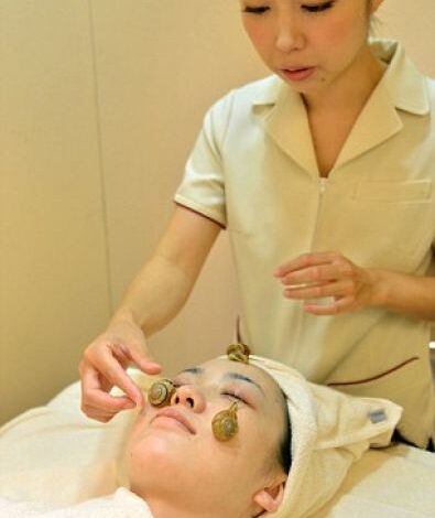 وفي هذا الجانب، تقوم صالونات التجميل في طوكيو باستخدمات جلسات علاجية للبشرة باستخدام القواقع حيث تستغرق الجلسة الواحد 60 دقيقة ، وتصل التكلفة 161 باوند.