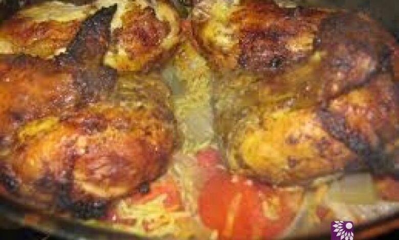 7- ودخليه الفرن لمده ساعه وبعد ماتخلص الساعه شيلي القصدير اللي فوق اللي كان مغطي الدجاج وخلي الدجاج يتحمر من فوق شويه