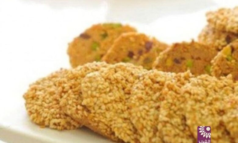 – تُقسم قطع العجين إلى قطع على شكل دوائر رقيقة وتغطى بالسمسم المحمص، الذي يجب خلطه مع العسل بدايةً.