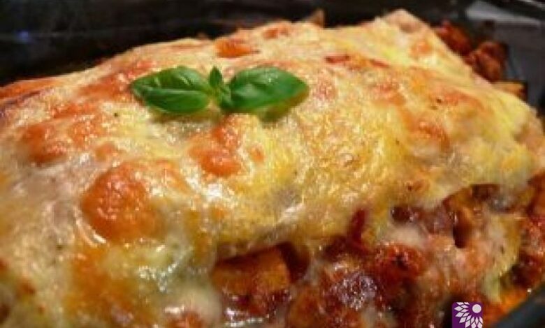 لزانيا الدجاج بالقشدة في وجبة شهية