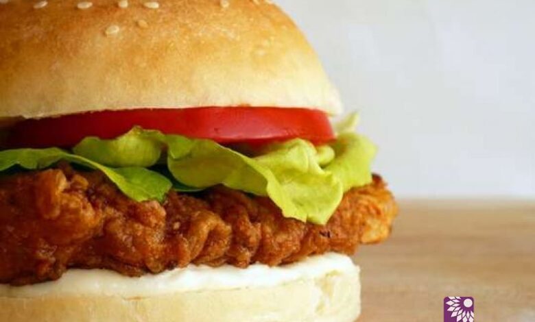 13- تُفرد صدور الدجاج على المايونيز، ويوضع عليها أوراق الخَس وشرائح الطماطم، وتقدم فوراً.