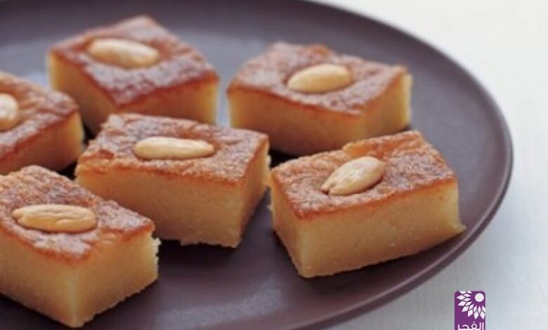 – سخّن الفرن وأدخل الصينية عشر أو (15) دقيقة ثم أخرجها واستعمل السكين لتقسيم محتويات الهريسة بشكل مربعات وضع اللوز فوق المربعات وأعد الصينية إلى الفرن حتى يصبح لون الهريسة بنياً انتظر حتى تبرد ثم قدمها مربعات.