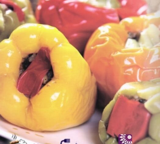 ملاحظة : يمكن تغطية فتحات حبات الفلفل بقطع البندورة الصغيرة .