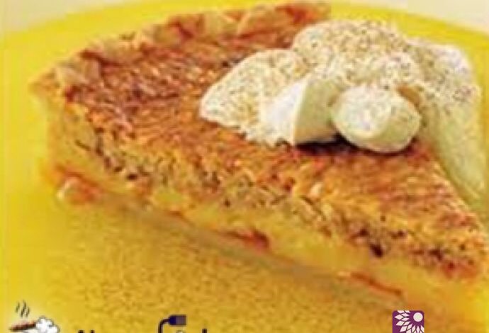 تفرد العجينة على سطح مغطى بالدقيق وتوضع في صينية فطائر متوسطة، ثم تبرد في البراد (الثلاجة)لمدة 15 دقيقة.