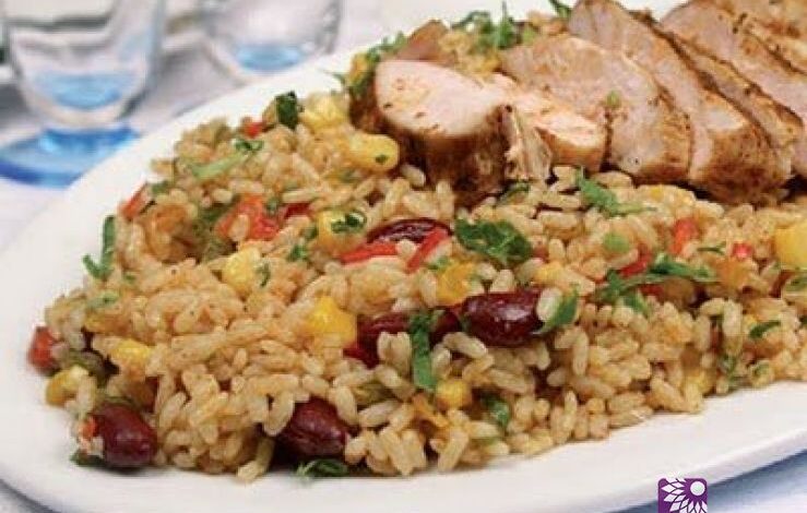 ◦2 ملعقة صغيرة من القرفة – 1ملعقة صغيرة من البهارات المتنوعة – 1/4 ملعقة صغيرة من الفلفل – 1 1/2 كوب من الأرز الذي ترغبون- 3 أكواب من مرقة الدجاج أو اللحم الساخنة – 2ملعقة كبيرة من البقدونس المفروم
