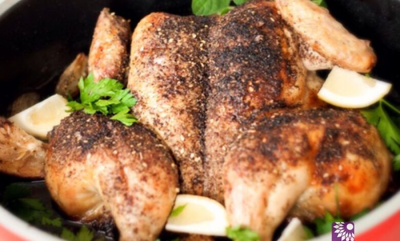 • نحط الفراخ فى صينية الفرن ونغطيها بالفويل ونسويها فى فرن حامى لمدة 45 دقيقة