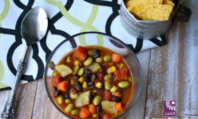 تلفزيون الفجر الجديد– طبق نباتي بامتياز يحتوي على مجموعة متنوعة من البقول الغنية بالبروتينات. يمكنك الاستغناء عن الفلفل الحار أو استعمال كمية اقل.