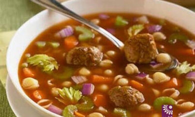 طريقة عمل شوربة الكفتة بالخضار مع صلصة البندورة