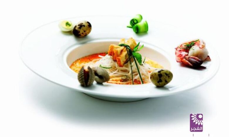 تلفزيون الفجر الجديد|جرب إعداد هذه الوصفة السنغافورية المتميزة لطبق شعيرية لاكسا اللذيذ، وفق طريقة الطاهية السنغافورية الشهيرة الشيف فيوليت أون، وتُعتبر شعيرية لاكسا طبقاً شعبياً يتألف من شعيرية الأرز التي تقدّم في شوربة جوز الهند الحارة.
