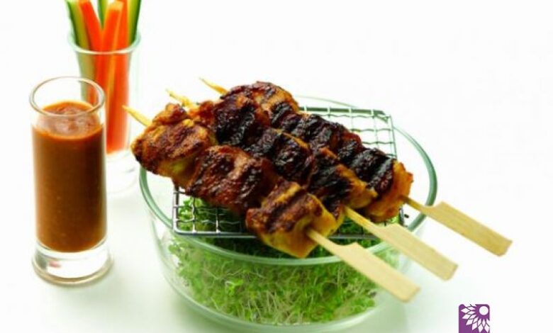للشوي، ضعي في كلّ سيخ ثلاث قطع من اللحم وادهنيها بالزيت باستخدام الفرشاة واشوي على الفحم حتى يصبح لونها على الجانبين بنياً ذهبياً، وقدّمي مع صلصة الفول السوداني وشرائح الخيار والبصل الطازج.