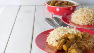 البامية مع الأرز الأبيض