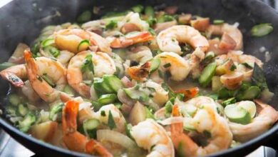 طاجن الروبيان بالهليون