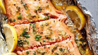 سمك السلمون بالثوم، والعسل
