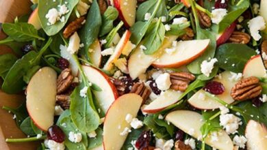 سلطة التفاح، والبيكان، والفيتا، والسبانخ