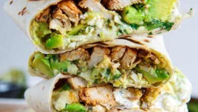 من المطبخ المكسيكي بوريتو الدجاج والأفوكادو