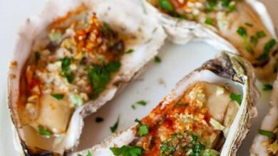 المحار المشوي وجبة عشاء فاخرة