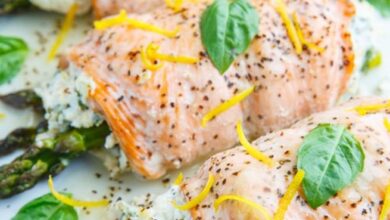 وصفة السلمون المحشو بالهليون والليمون والريحان والريكوتا