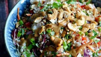 الأرز التايلاندي بالكاجو وجوز الهند مع صلصة الزنجبيل