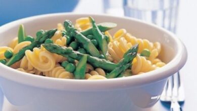 المعكرونة مع البازيلا والهليون