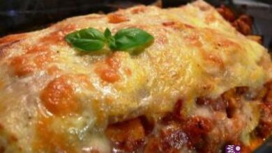 لزانيا الدجاج بالقشدة في وجبة شهية