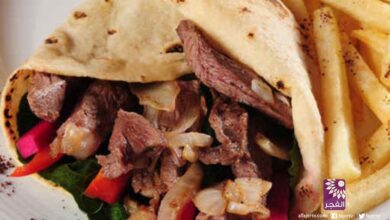 طريقة عمل شاورما اللحم مع صلصة الطحينة , صحتين !!