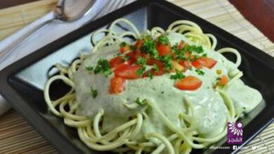 المكرونة بصلصة الكريمة والريحان