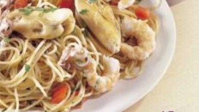 معكرونة بالقريدس والحبار