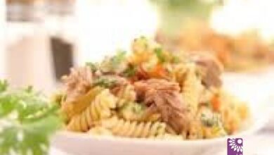سلطة المكرونة مع التونة والزيتون الأسود والأخضر