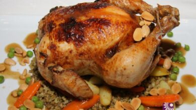 طريقة عمل الدجاج المحشي بالارز في الفرن