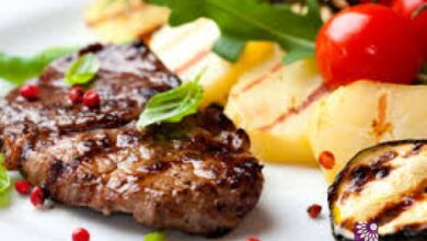 الستيك المشوي بالخضار وصلصة الزبدة بالبقدونس
