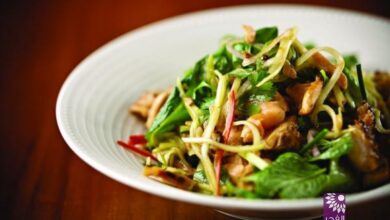 سمك السلمون المذبّل مع سلطة المانغو الأخضر