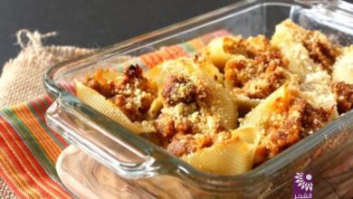 أصداف الباستا المحشوة بالبطاطا الحلوة مع نقانق المحشية